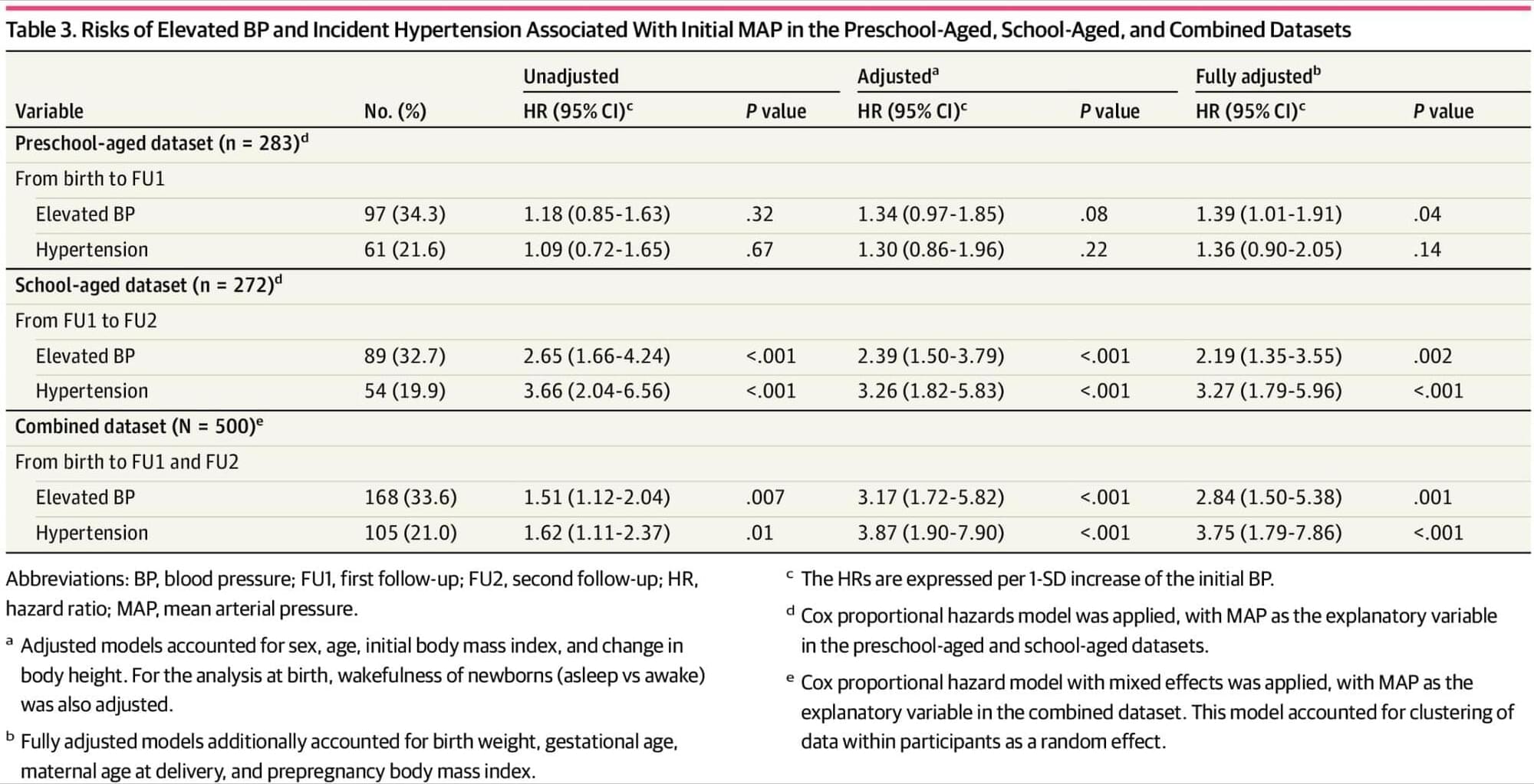 Question Is blood pressure (BP) at birth and in early childhood associated with BP in later childhood?