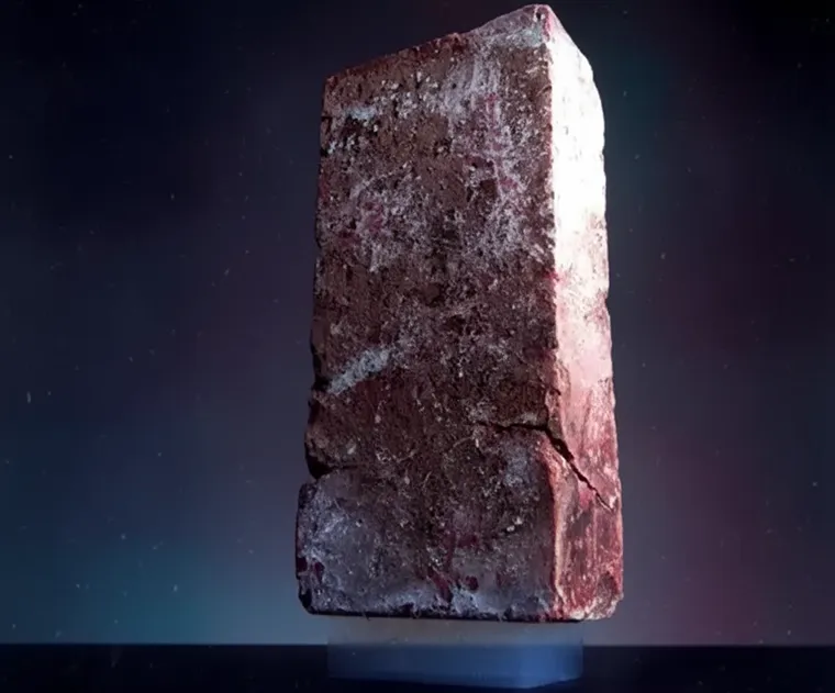 This tiny block of transparent aerogel is supporting a brick weighing 2.5 kg. The aerogel’s density is 0.1 g/cm3.